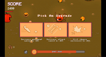 The Game Is Simple, Survive! Your Ammo Are Leaves That drop From Trees. And Evil Pumpkins Want To make A Human-smoothie Out Of You With Their Acid Shots While Others Want To Turn You Into Shish Kebab With Their Fire Shots. Destroy Them And Collect Their Sweet pumpkin Deserts To Level Up Your Stats.